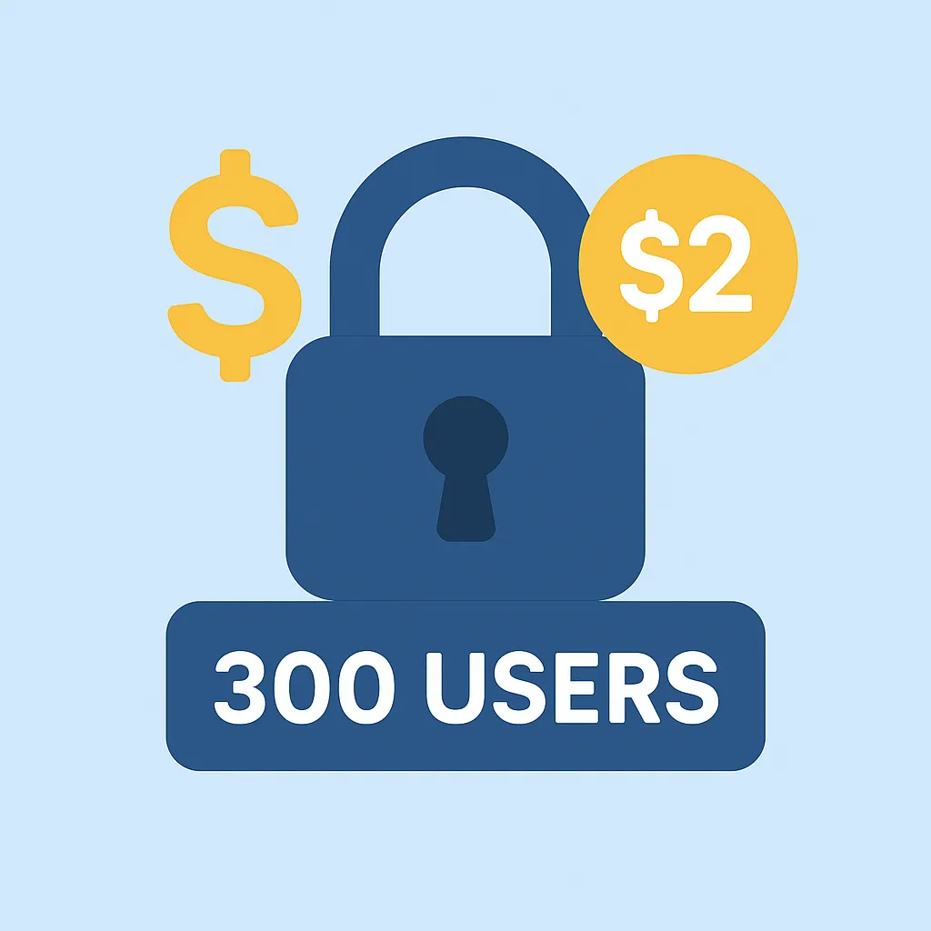 Lock in the exclusive $3/month deal once we hit the 300-user quota. You’ll never pay more as long as you stay subscribed.