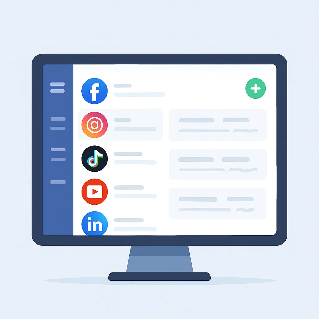 Manage all your accounts (Facebook, Instagram, TikTok, YouTube, Pinterest, LinkedIn, and Google Business) in one simple place.